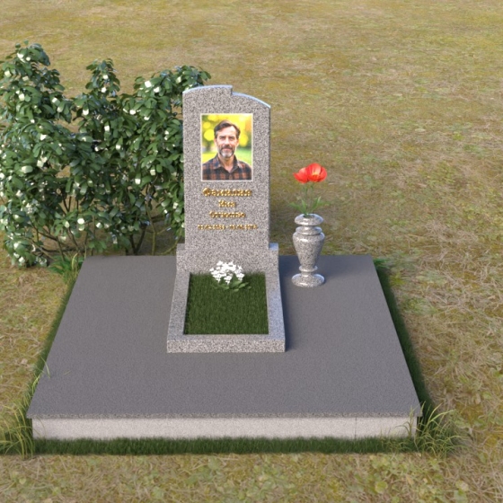 Геометрия модели продумана до мельчайших деталей. Начиная с основания, мы видим широкую плиту, обеспечивающую устойчивость всей конструкции. На ней возвышается горизонтальная плита меньшего размера, выполненная в зеркальной полировке, отражающая небо и окружающий мир, словно запечатлевая в себе мгновения жизни. Вертикальная стела, возвышающаяся над плитой, имеет сглаженные углы и плавные переходы, смягчающие строгость формы. Верхняя часть стелы, с ее деликатными сколами, придает ей уникальность и неповторимость. Рядом со стелой располагается небольшая ваза, выполненная в том же стиле, предназначенная для живых цветов, символизирующих вечную память и любовь.