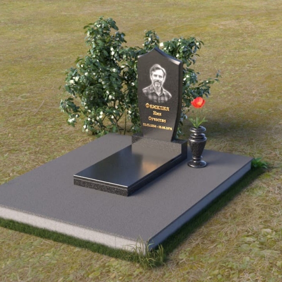 Оформление: Для данной формы стелы идеально подойдет гравировка портрета усопшего в верхней части. Имя, отчество, фамилию и даты жизни можно разместить ниже портрета, используя строгий, лаконичный шрифт. Золотое напыление букв создаст элегантный контраст с черным гранитом и подчеркнет важность информации.