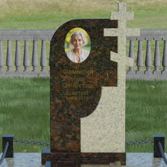 Выбор мемориального комплекса — это всегда глубоко личный процесс, стремление выразить в камне ту любовь и уважение, которые мы храним в сердце. Модель под артикулом 019 создана для тех, кто ценит благородную асимметрию и глубокий символизм. Величественная стела представляет собой сложную художественную композицию, в которой мастерски скомбинированы две контрастные фактуры. Левая часть памятника имеет мягкий, плавный изгиб, символизирующий завершенный жизненный путь, наполненный светом и душевным теплом. Правая же сторона акцентирована монументальным православным крестом, который является не просто элементом оформления, а неотъемлемой частью самой конструкции.