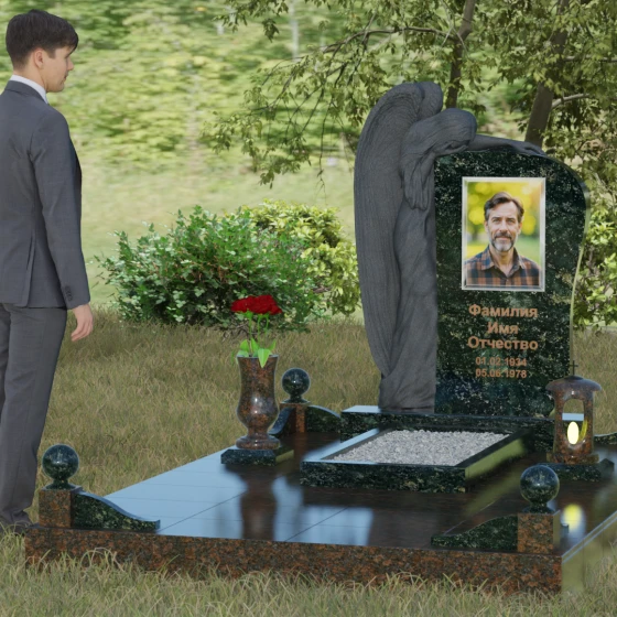 Гранит — это камень, рожденный в недрах земли под колоссальным давлением, что наделяет его исключительной плотностью и морозостойкостью. Гранитный монумент этой модели сохранит свою полировку и четкость резьбы на протяжении столетий. Для того чтобы памятник максимально точно отражал характер ушедшего человека, мы предлагаем выполнение данной композиции в восьми уникальных цветовых решениях: