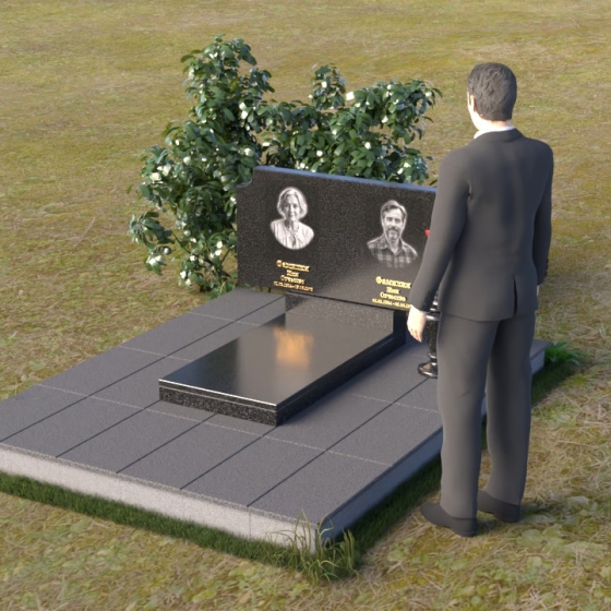 Оформление: Для этой формы стелы идеально подойдет гравировка портретов в овальной или прямоугольной рамке. Имена и даты жизни можно расположить под портретами, используя золотой или серебряный шрифт. Дополнительно можно добавить эпитафию, выражающую любовь и скорбь. Не перегружайте композицию лишними деталями – лаконичность и сдержанность подчеркнут достоинство и элегантность памятника.